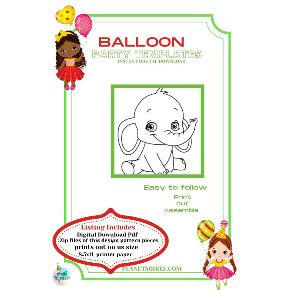 A PDF with easy to follow instructions on how to build a Baby Elephant Mosaic Balloon.