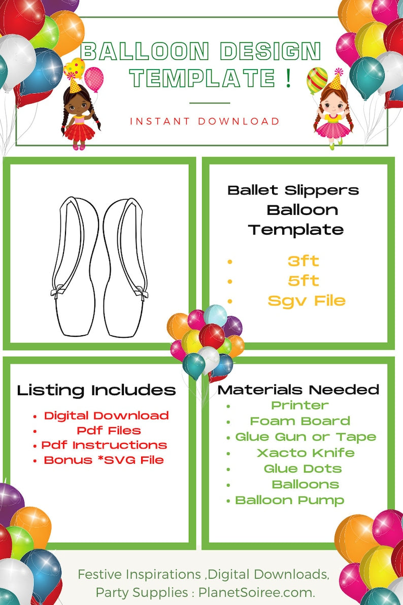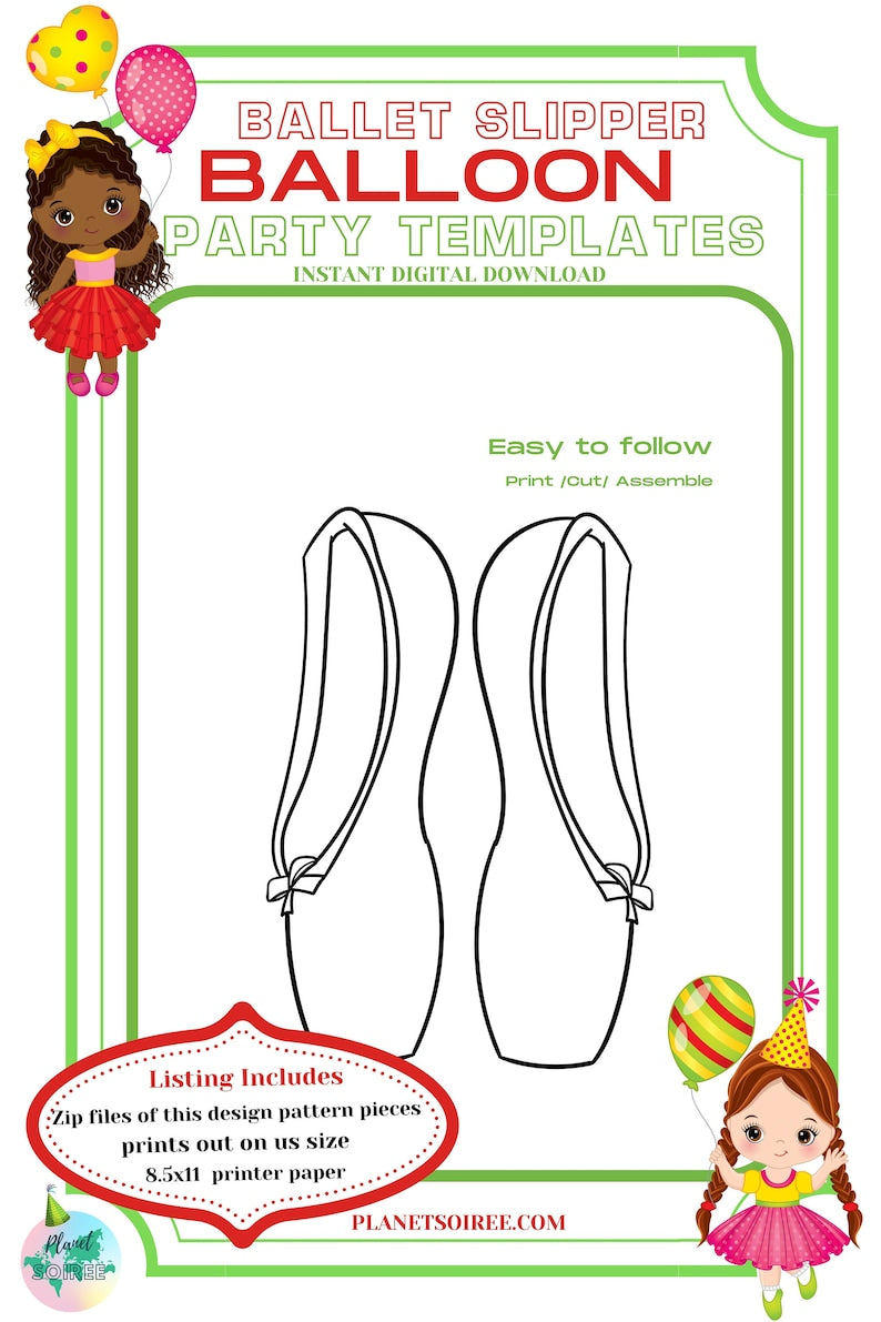 Ballet Slipper Mosaic Balloon Template, Dancer Digital Download,Balloon Mosaic Template,Toe Shoe balloon Template Birthday Balloon template.