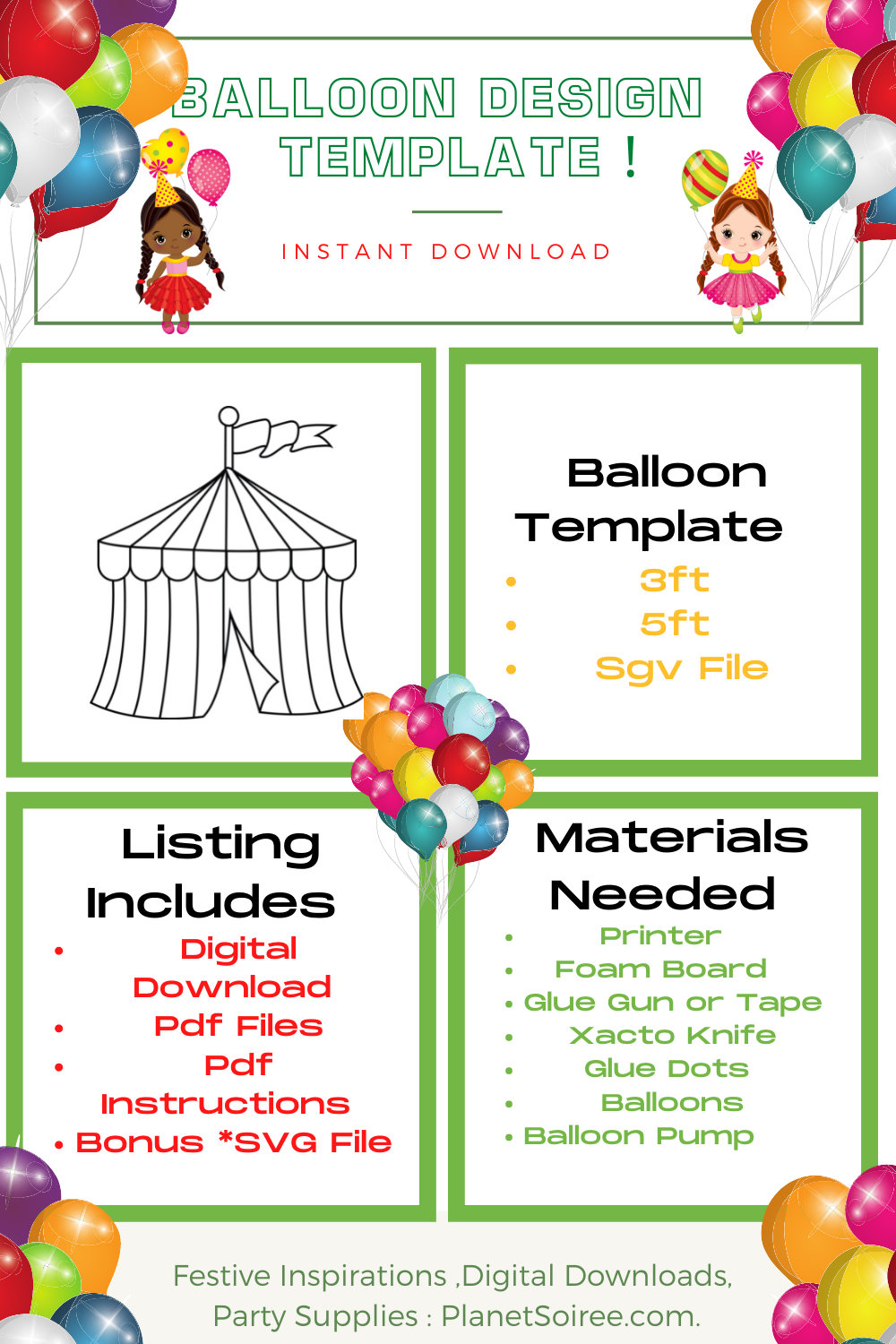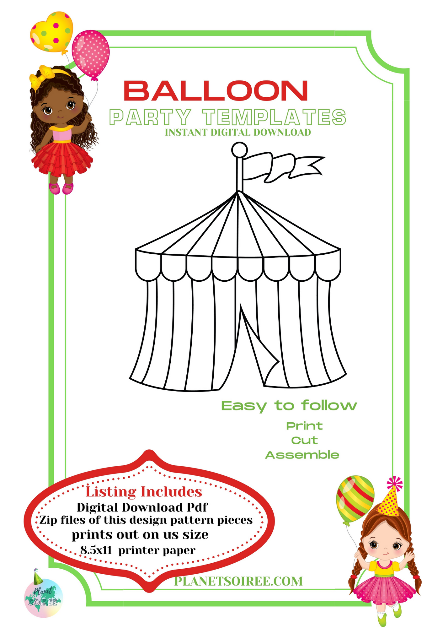 Balloon Mosaic: This personalized party decoration is perfect for your child’s birthday party. Looking for a unique and easy way to decorate for your next party? Look no further than the Balloon Mosaic Template! " Circus Tent Template. Planet Soiree's Balloon templates allow you to create a one-of-a-kind Balloon Mosaic that is sure to impress your guests. The best part is, it's very easy to do! Simply print out the design, cut out the pieces, and tape them together. Then trace the design onto foam board, and glue the pieces together. Finally, fill it with balloons or flowers and you're all set! Our design pattern can be used in many ways. Use to create the perfect Piñata, make with plywood for a party prop. With this Balloon Mosaic Template, you'll be able to create a beautiful decoration that will make your next event unforgettable! Additional matching on Circus Tent Template” Products are also available. Thank you for choosing us!